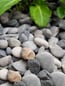 Une pierre de rivière colorée qui est extraite de la Meuse. Un galet très naturel. Les cailloux sont donc souvent utilisés pour donner à un jardin une apparence plus naturelle, en les plaçant par exemple dans des paniers, en décoration autour et dans des étangs et comme couverture de sol de morceaux de jardin. Également souvent utilisé sur et autour des fermes. Caractéristique des cailloux de la Meuse est la forme très ronde, qui s'est formée de manière naturelle à cause du courant de l'eau.