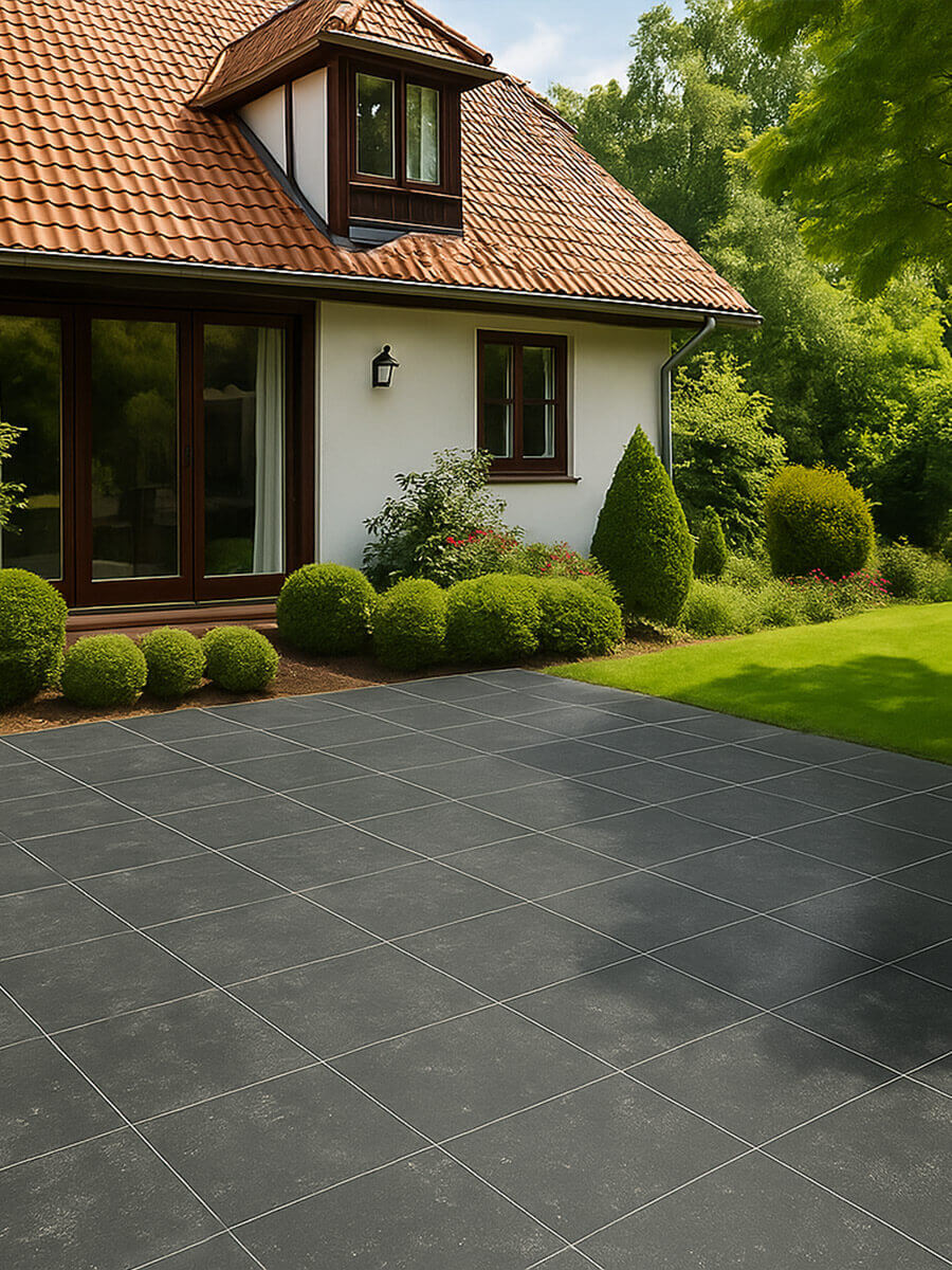 Anthrazitgraue Terrassenplatten, Ultra Landscape Night sind aufgrund ihrer schönen dunklen Farbe sehr beliebt.