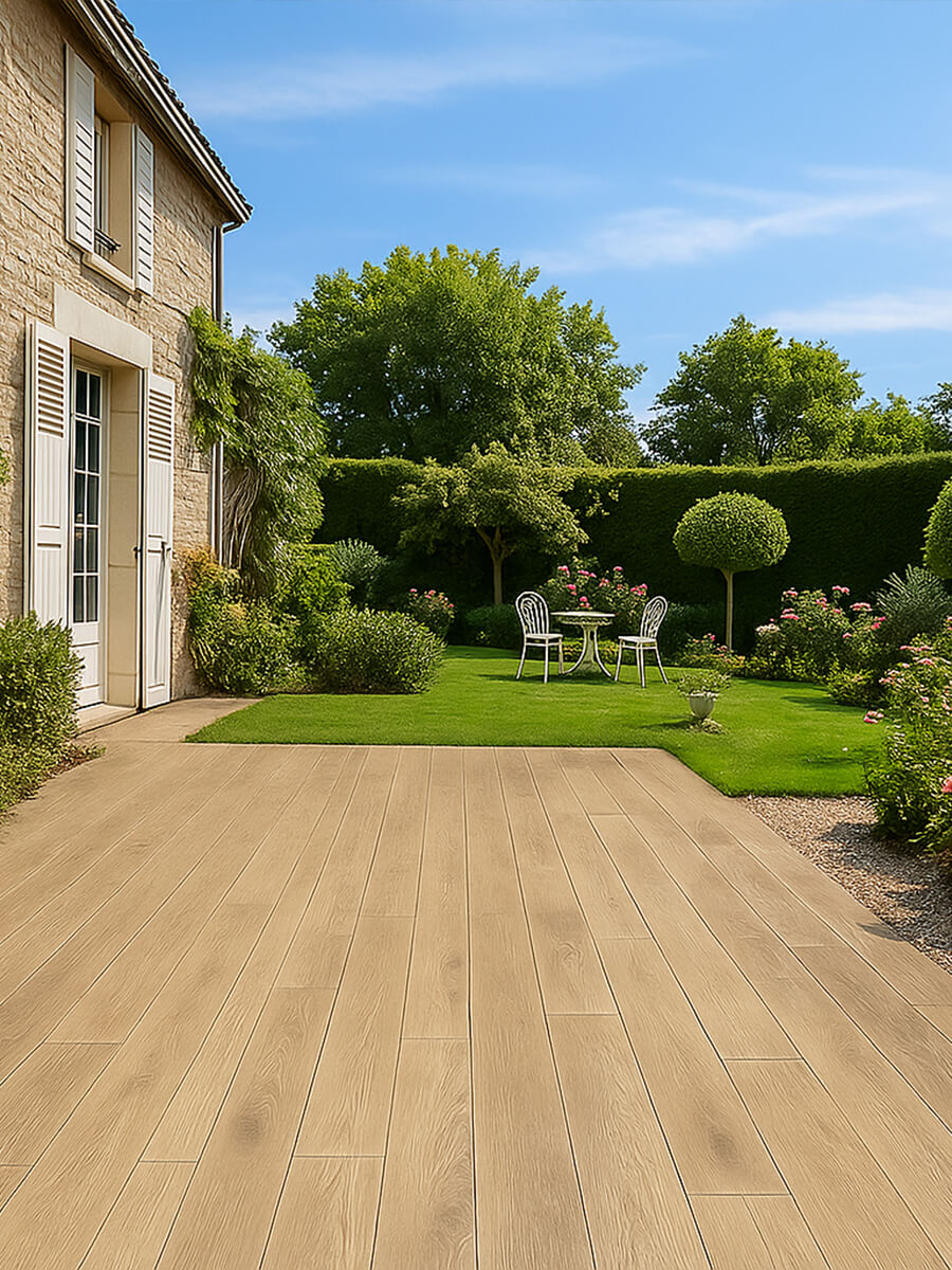 Carrelage Extérieur Ceramique effet Bois Naturel, Épaisseur 2cm
