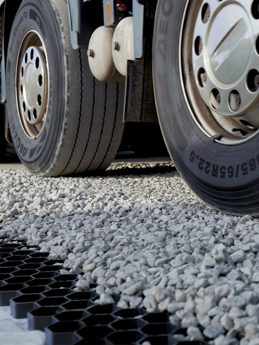 Profiteer van deze volle palletactie van de EuroGravel PLUS grindplaten / grindmatten, met geïntegreerd anti-worteldoek.